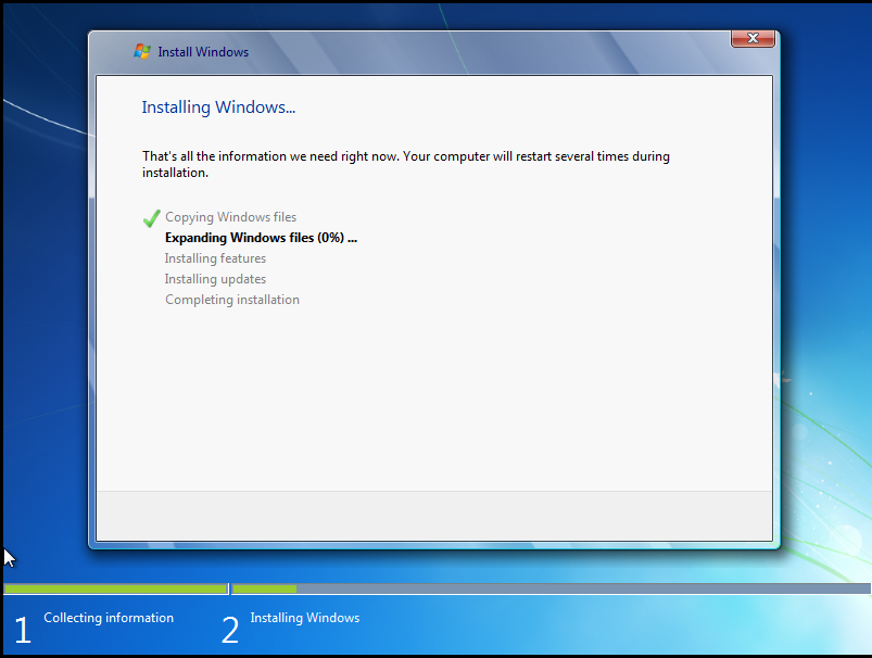 开始进入系统安装过程;
