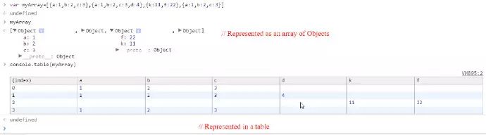 当我们在控制台中输入变量名称时,它会返回一个对象数组。 这非常有用。 您可以展开对象以查看属性值。