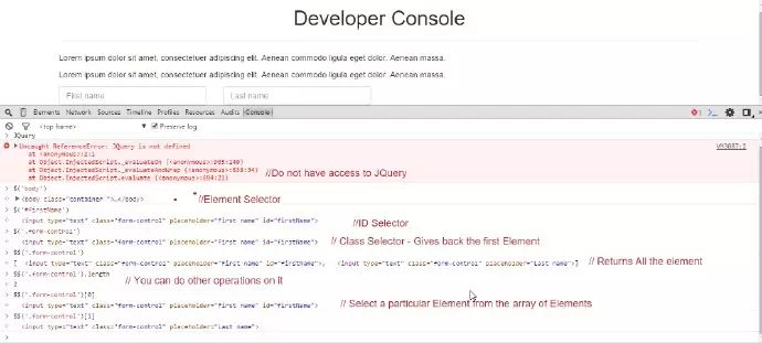 但是当您无法在 DOM 中使用 jQuery 时,您仍然可以在开发者控制台中执行相同的操作。