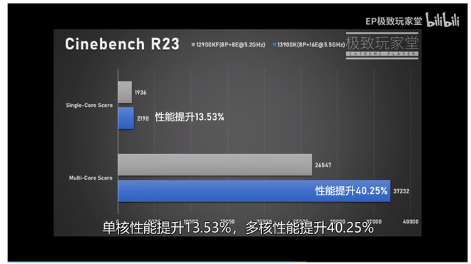 上周,b站up主@EP极限玩家堂发布了一款QS版i9-13900K样张的详细测试。 i9-13900K采用8个性能核心和16个能效核心的组合,总线程数达到32个。性能核心全核睿频频率高达5.5GHz,双核最大睿频主频高达5.8GHz!