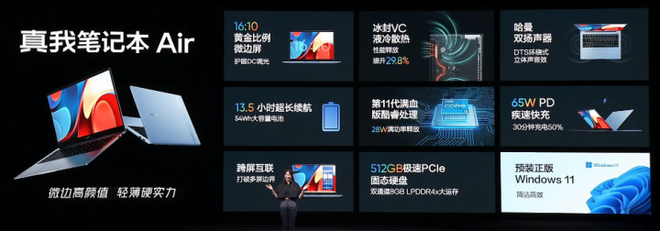 Realme笔记本Air的机身厚度为14.9mm,重量约为1.36kg。 配备14英寸16:10比例、1920*1200分辨率微帧显示屏,并支持DC调光。 散热方面,搭载冷冻VC液冷技术,支持Fn+R三档性能模式。 它拥有54瓦时电池,支持65瓦超级闪充。 8GB+256GB版本起售价2999元,8GB+512GB版本起售价3299元。 将于7月19日正式上线。