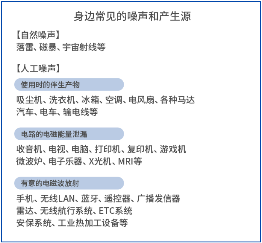 电子设备的噪声问题并不是轻易解决的。 噪声的难点在于,与电信号一样,它也是电磁能。 如果一个系统需要电磁能而其他系统不需要,就会变成噪声,所以电子设备必然伴随着噪声。 它们会穿过电源线和信号线,或者成为跨越空间的电磁波,导致电子设备故障和性能下降。