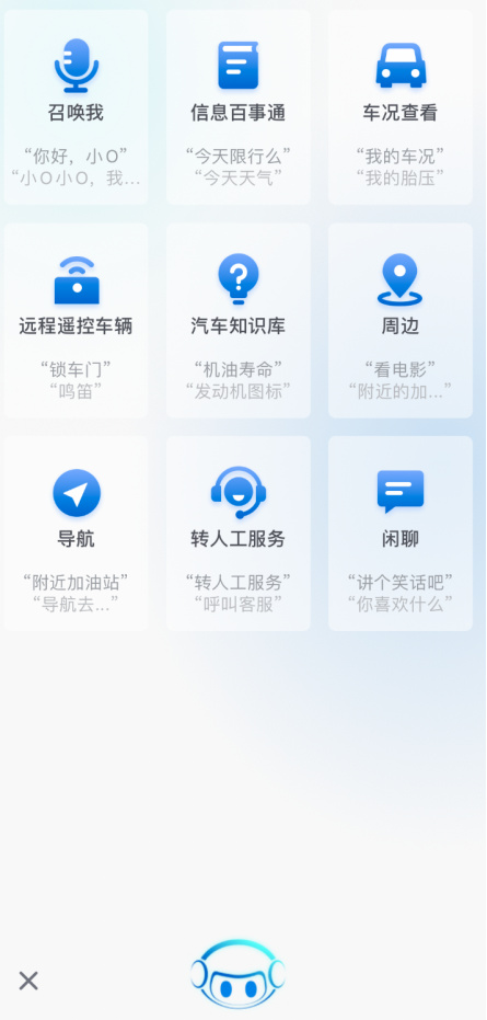 另外,顶部右上角放置了“小O语言助手”,方便用户调用,比如导航回家、找停车场/加油站、远程锁定等,甚至可以开启聊天打发时间的模式。 时间。