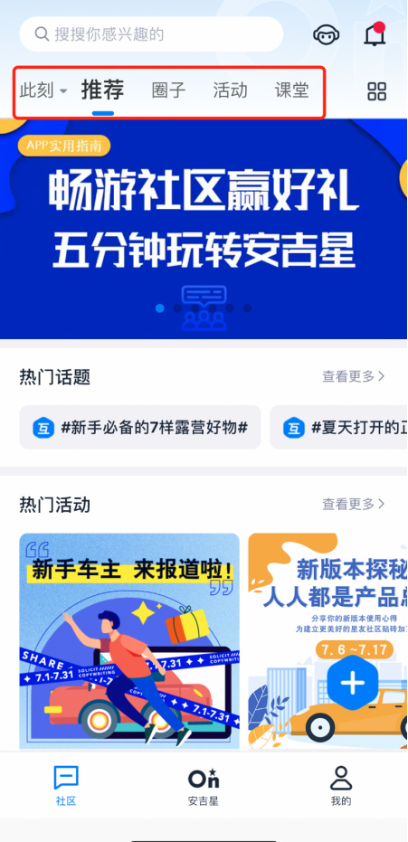 安吉星App 10.0版本升级的第二个亮点是【社区】版块。