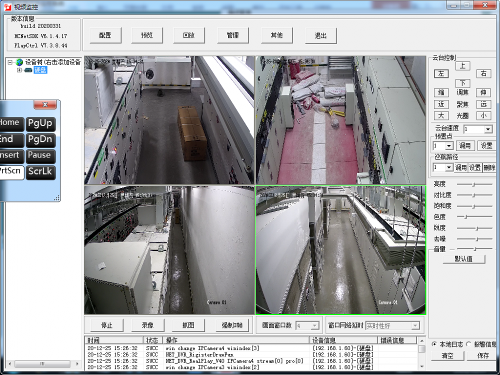 参数设置、通讯管理、图形绘制、状态监控、设备控制、视频监控回放、报警事件记录查询、报警图片和视频查询等功能。