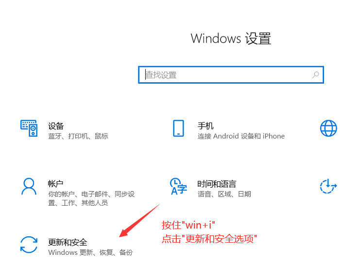 第一步:同时按下【Win+i】打开设置窗口,在打开的界面中选择【更新和安全选项】;