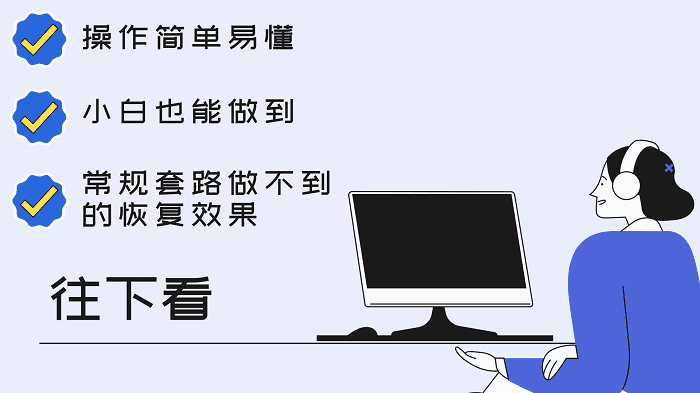 专业的数据恢复软件可以帮助您,例如 Datafrog 数据恢复软件。功能强大,支持U盘、硬盘、回收站、存储卡等设备数据的恢复,支持文档、视频、照片、压缩包等文件格式的恢复。它可以扫描多种类型并在很大程度上恢复意外丢失的数据。如果左侧没有您要恢复的U盘文件,只需根据软件右上角的提示进行即可。如果无法恢复,请多次按组合键,直至误删除的文件恢复到U盘中。了解了U盘格式化的原因之后,我们就来看看U盘格式化后如何恢复数据吧!如果你还没有找到合适的恢复方法,可以尝试小编推荐的这个方法。
