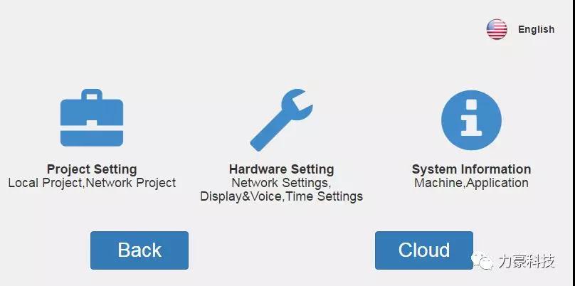 4.2 点击【云设置】(云),出现二维码界面。 如果没有出现,请确认网络连接是否正确,点击【硬件设置】检查IP是否设置正确,修改IP后点击保存。