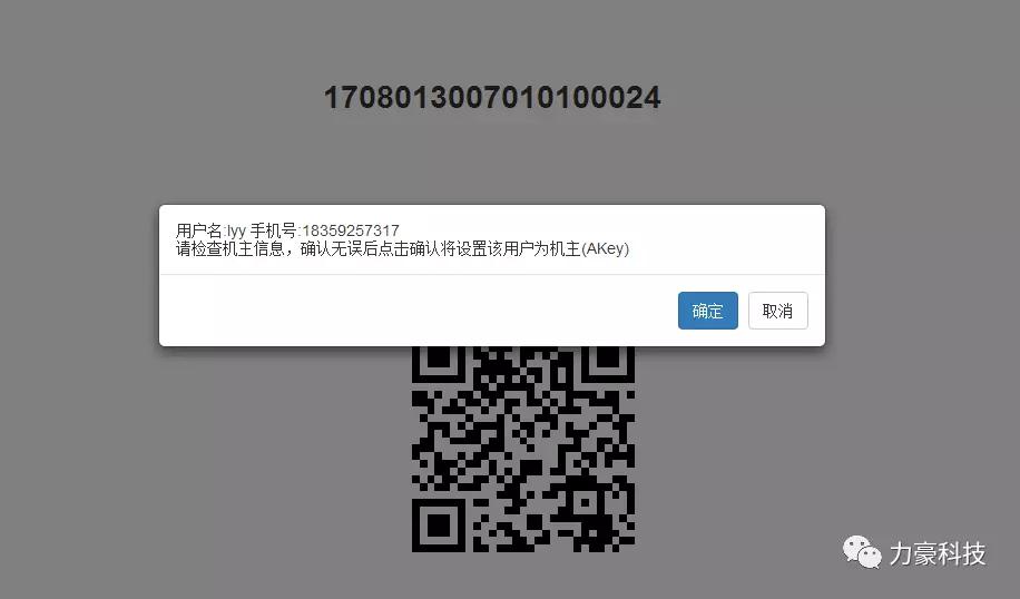 4.3. 使用新注册的手机APP直接扫描屏幕上的二维码。 触摸屏上将出现一条确认消息。 手机上也会出现两种验证方式。 确认信息无误后,点击触摸屏上的“确认”即可成为主人。 手机可以直接访问这个触摸屏。