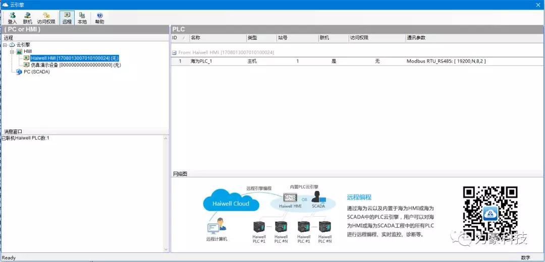 1、编程软件支持海为云平台。 您可以通过海为云远程编程、上传下载PLC、固件升级、诊断、监控和调试,让您轻松远程连接,随时检测现场异常情况。