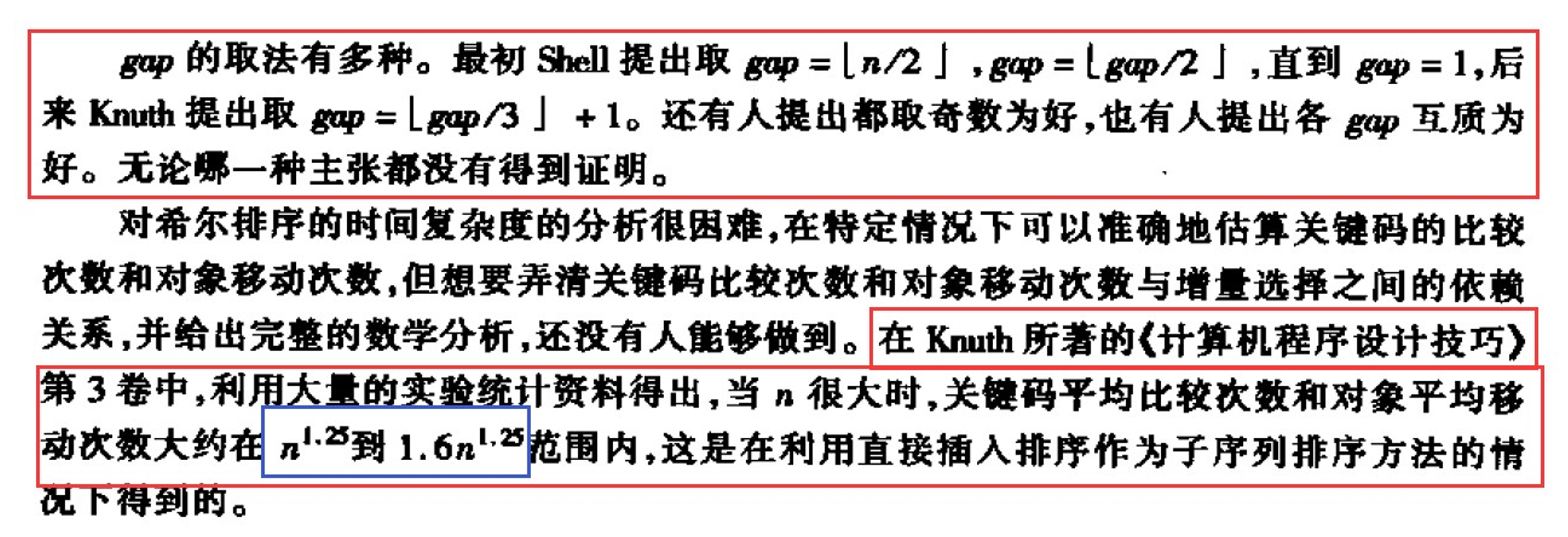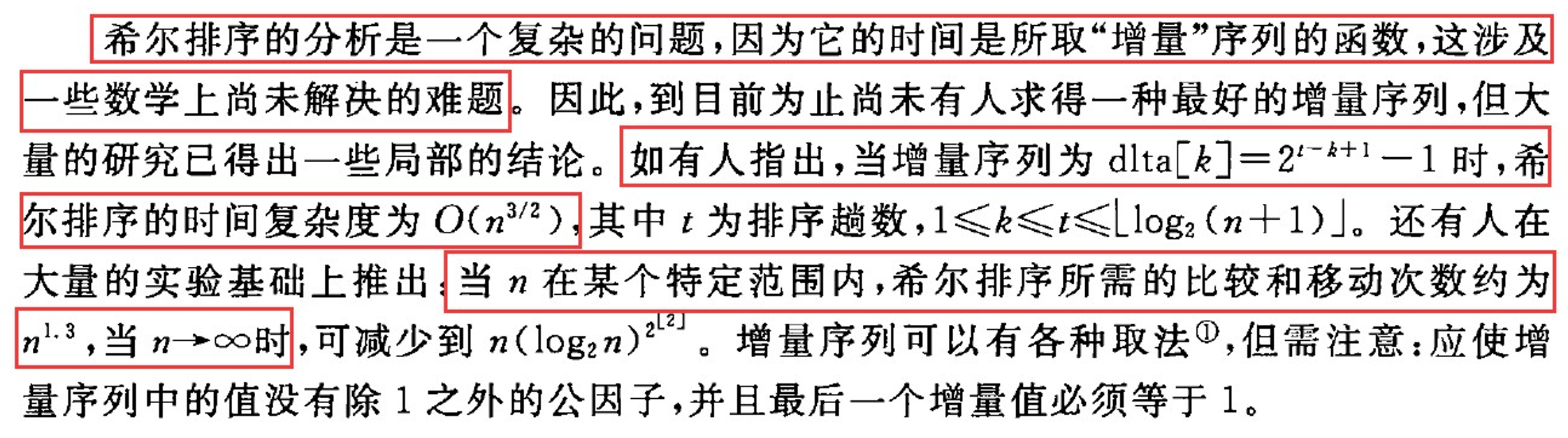 时间复杂度 空间复杂度 稳定性 O(N ^ 1.3) O(1) 不稳定的排序 希尔排序的效率与怎么分组息息相关,严蔚敏和殷人昆的《数据结构》书中中对希尔排序的效率问题是这样表示的: