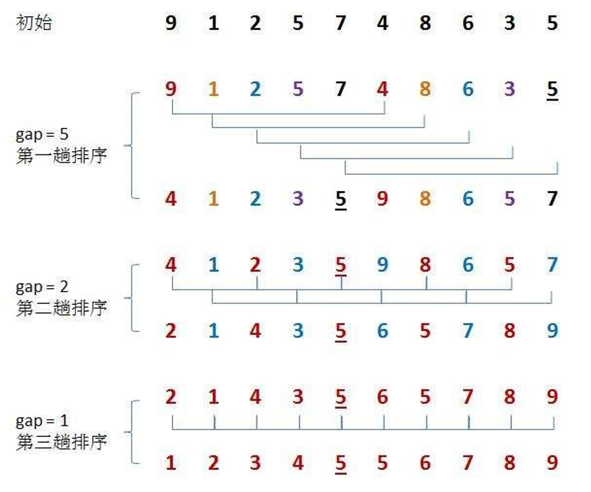 gap递减的规则不唯一 , 可以循环除3加1,也可以除2; 下面的代码中用的是除2实现。
