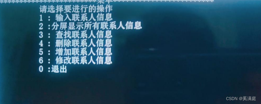 #include #include #include int n=0; struct person {char name[20]; char WP[20]; char PN[20]; char MPN[20]; char FZ[20]; char EM[20]; char QQ[20]; }; void fun1 (struct person b[100],int B[100]) {int i=0; int H; do {printf("请输入第%d个联系人的信息\n",i+1); printf("请输入姓名:"); scanf("%s",b[B[i]].name); printf("\n"); printf("请输入工作地址:"); scanf("%s",b[B[i]].WP); printf("\n"); printf("请输入固定电话号码:"); scanf("%s",b[B[i]].PN); printf("\n"); printf("请输入移动电话号码:"); scanf("%s",b[B[i]].MPN); printf("\n"); printf("请输入与本人关系:"); scanf("%s",b[B[i]].FZ); printf("\n"); printf("请输入邮箱:"); scanf("%s",b[B[i]].EM); printf("\n"); printf("请输入QQ号码:"); scanf("%s",b[B[i]].QQ); printf("\n"); i++;n++; printf("1继续输入;0退出\n"); scanf("%d",&H); }while(H!=0); printf("\n"); } void fun2 (struct person F[100],int h[100]) {int i=0,t,k,p,m; t=n/10; printf("所有联系人的信息如下:\n"); if(t==0) {for(i=0;i