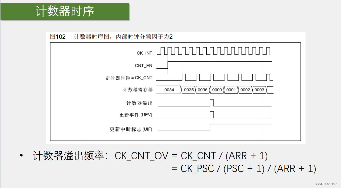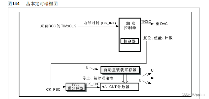 - 定时器可以对输入的时钟进行计数,并在计数值达到设定值时触发中断