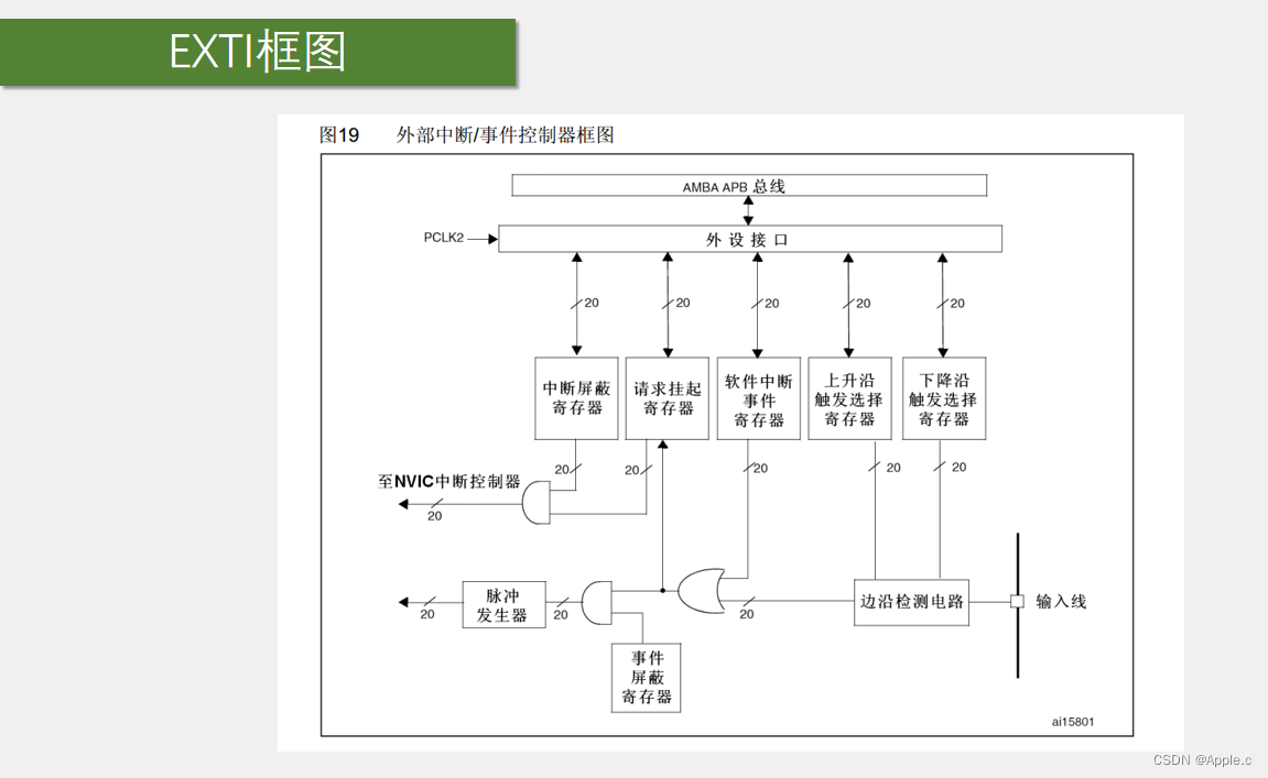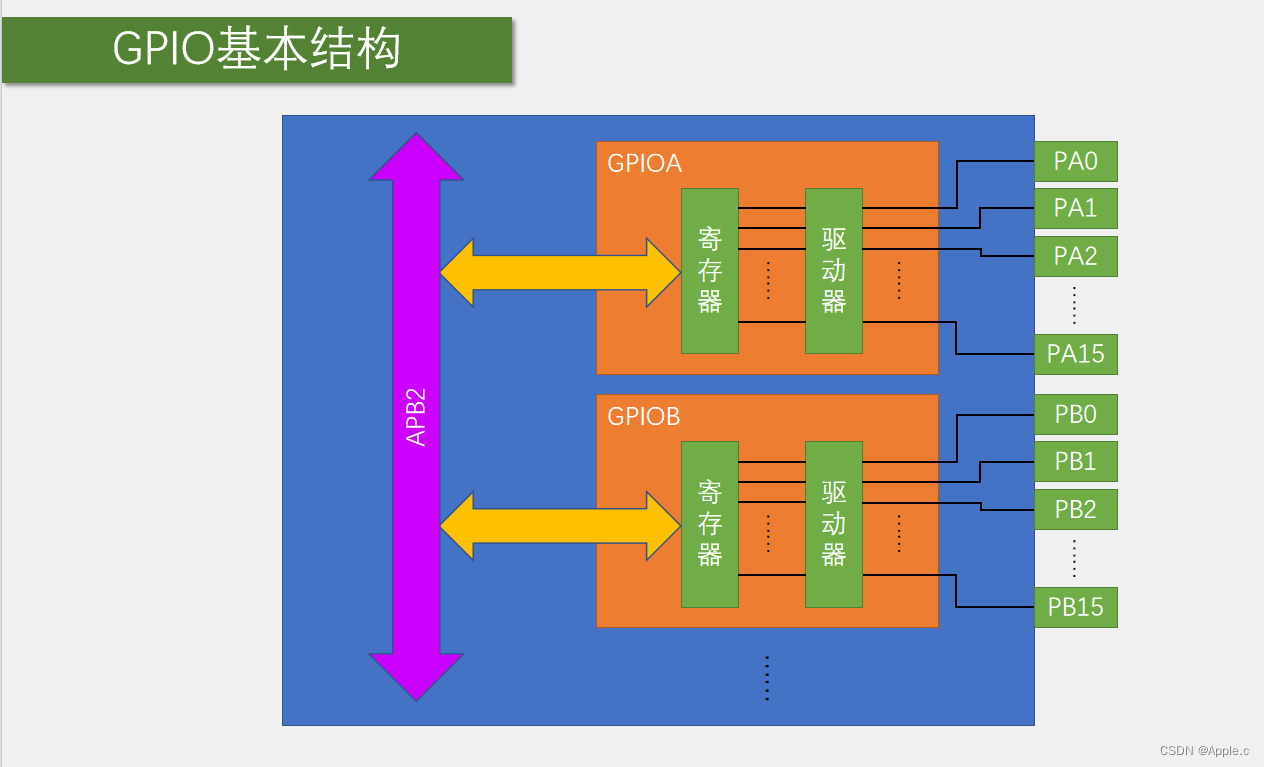 AHB系统总线:用于挂载主要的外设,AHB指先进高性能总线,挂载最基本的或者性能比较高的外设