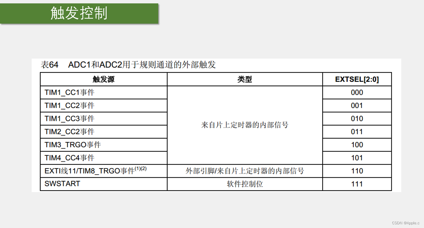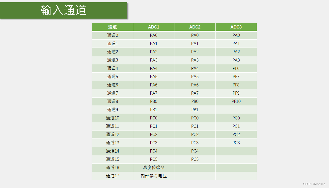- STM32F103C8T6 ADC资源:ADC1、ADC2,10个外部输入通道
