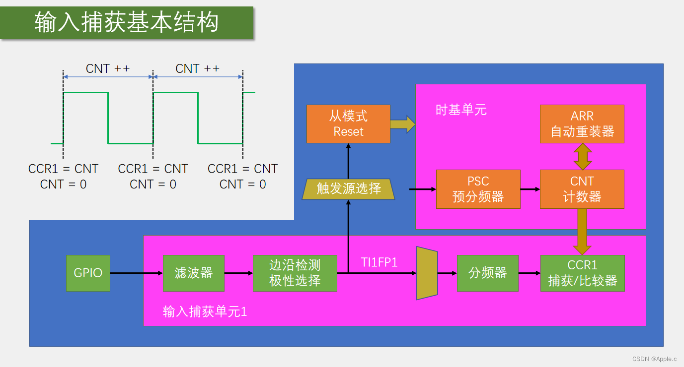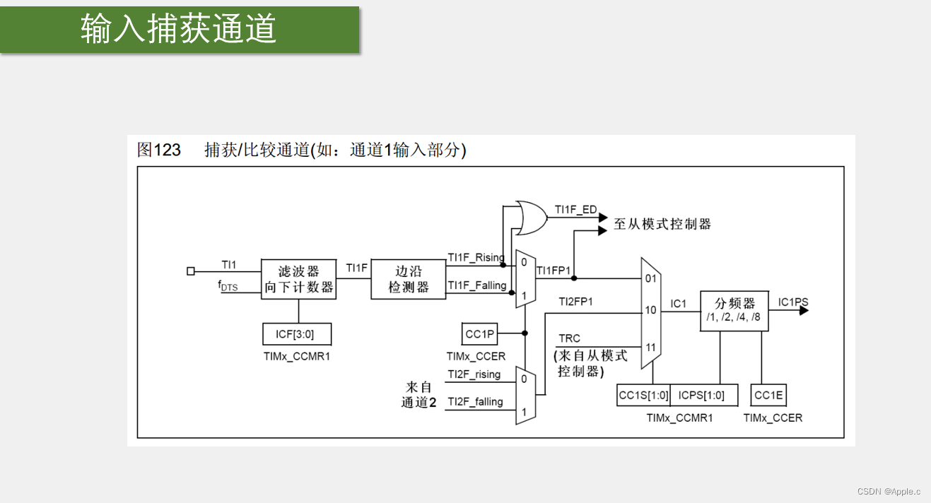 - 每个高级定时器和通用定时器都拥有4个输入捕获通道