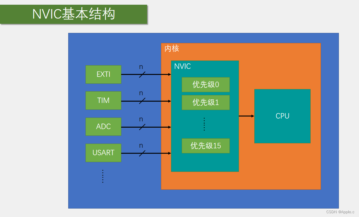 - 中断优先级:当有多个中断源同时申请中断时,CPU会根据中断源的轻重缓急进行裁决,优先响应更加紧急的中断源