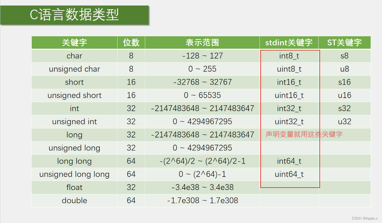 - 引用typedef: uint8_t a; //等效于unsigned char a;