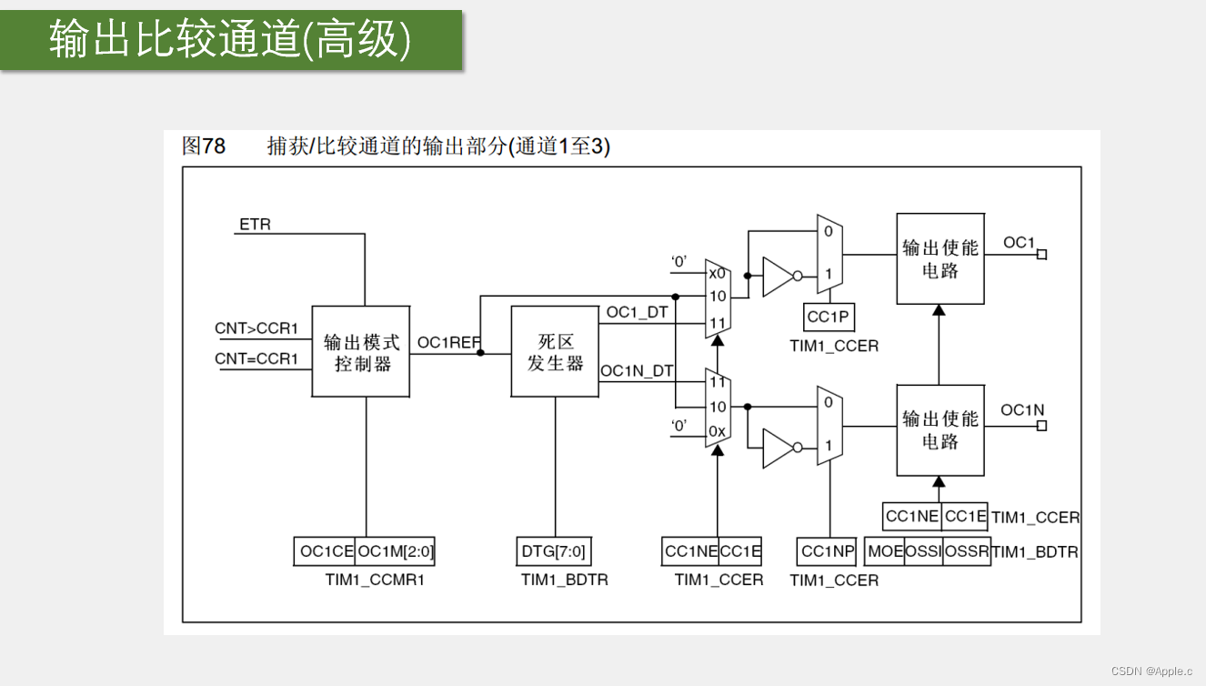 - 高级定时器的前3个通道额外拥有死区生成和互补输出的功能