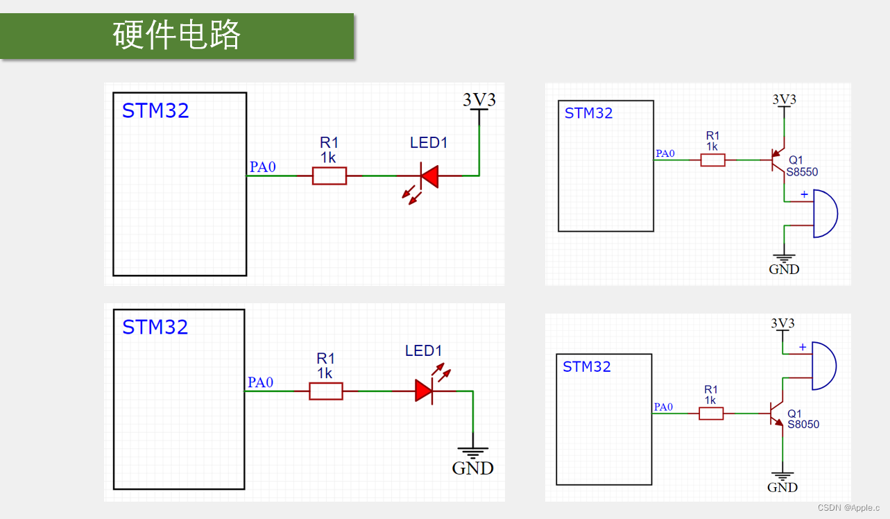 P-MOS如果无效就是开漏输出,如果P-MOS和N-MOS都有效就是推挽输出三 、LED闪烁&LED流水灯&蜂鸣器