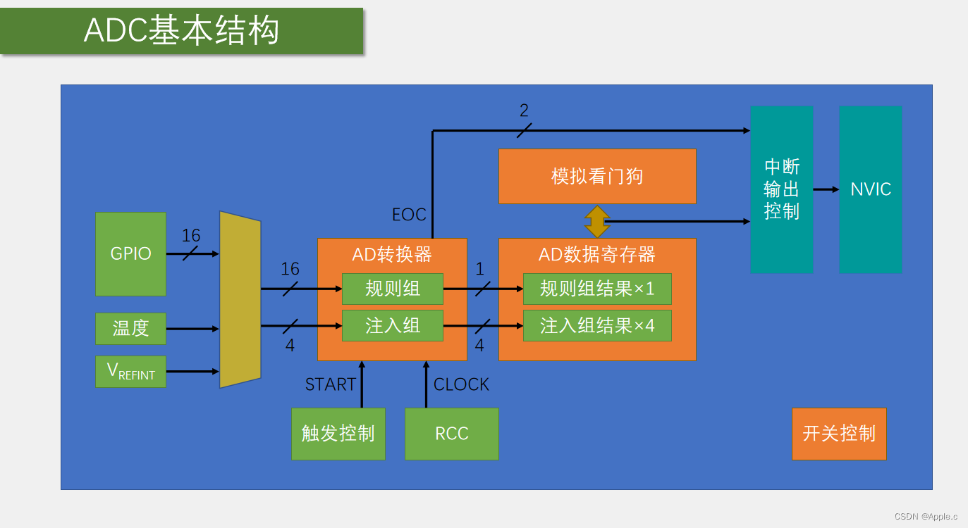- ADC可以将引脚上连续变化的模拟电压转换为内存中存储的数字变量,建立模拟电路到数字电路的桥梁