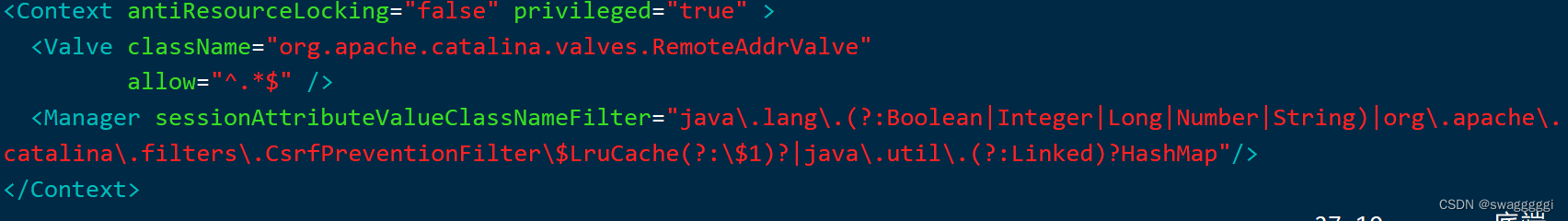 [root@tomcat ~]# vim /usr/local/tomcat/conf/tomcat-users.xml [root@tomcat ~]# vim /usr/local/tomcat/webapps/host-manager/META-INF/context.xml [root@tomcat ~]# vim /usr/local/tomcat/webapps/manager/META-INF/context.xml # 内容均修改为如下图片,然后重启tomcat