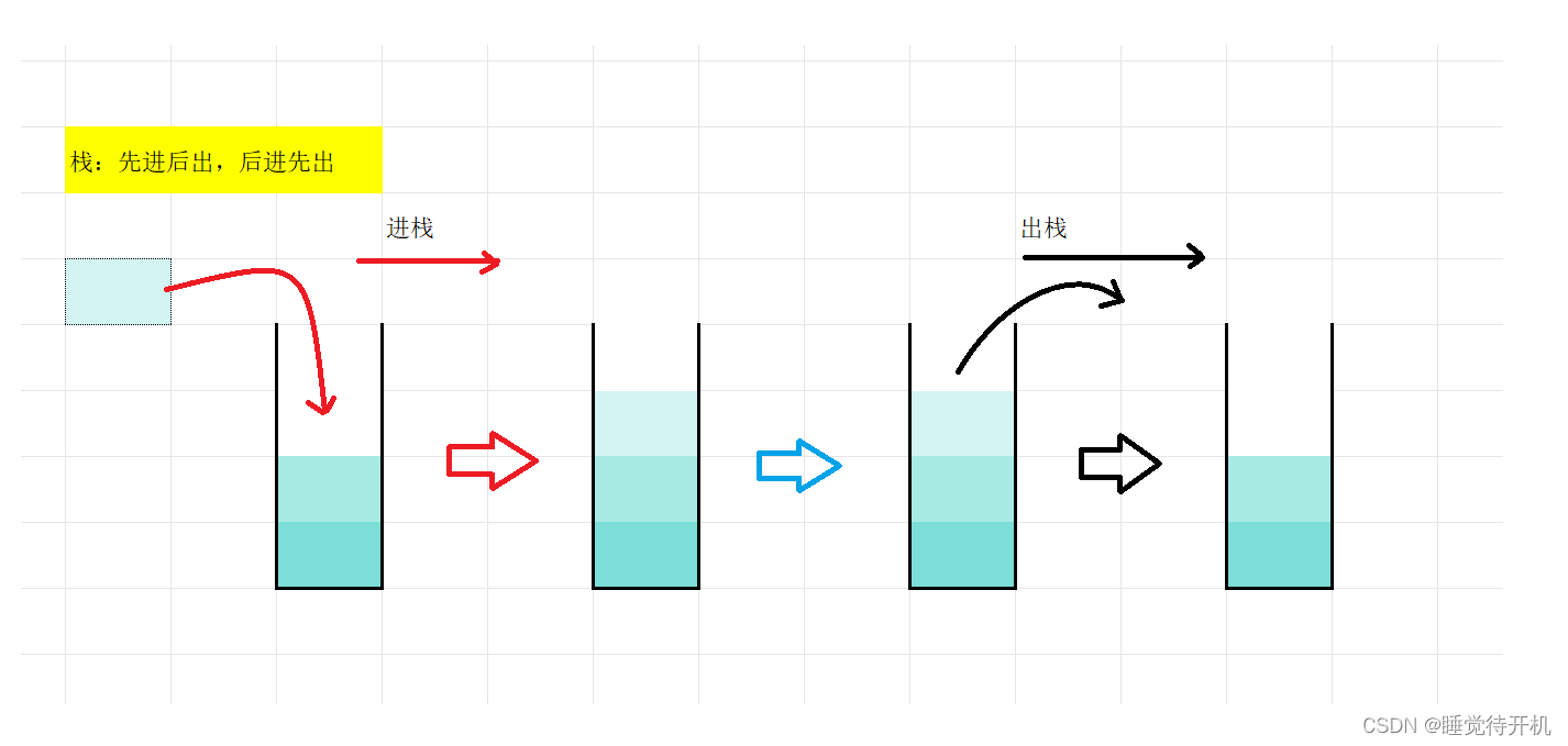 出栈:栈的删除操作叫做出栈。出数据也在栈顶。
