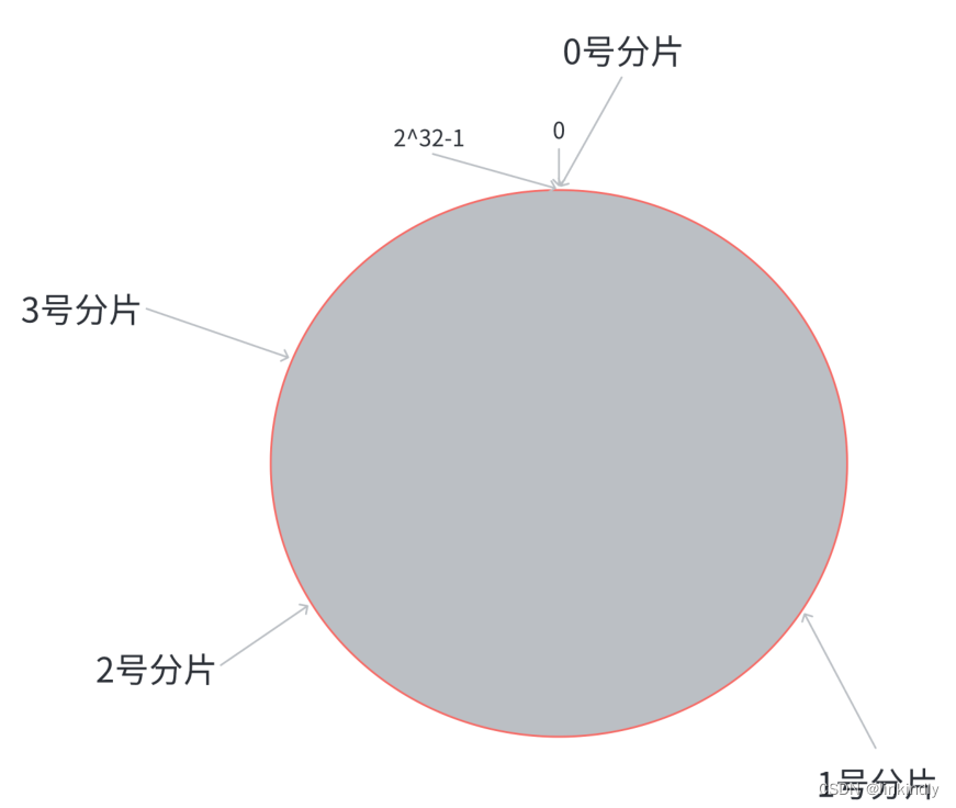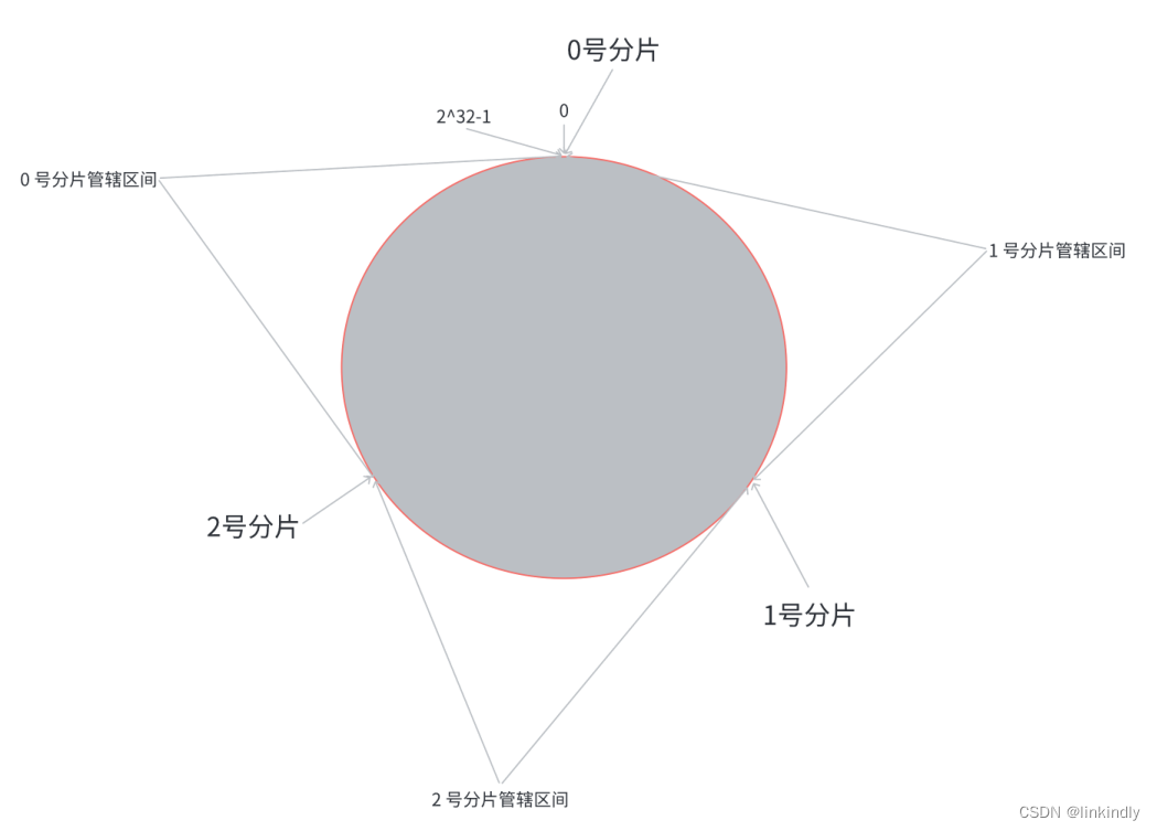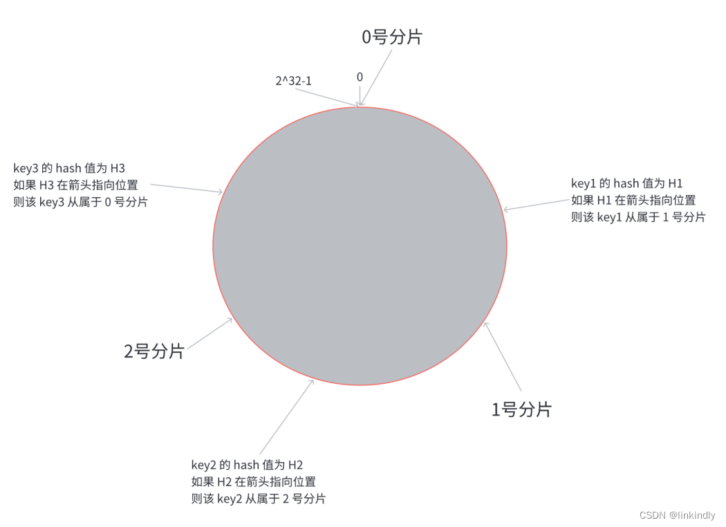 所在位置,顺时针往下找,找到的第一个分片,即为该key所从属的分片.