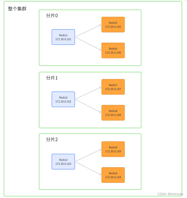 redis-cli --cluster create 172.30.0.101:6379 172.30.0.102:6379 172.30.0.103:6379 172.30.0.104:6379 172.30.0.105:6379 172.30.0.106:6379 172.30.0.107:6379 172.30.0.108:6379 172.30.0.109:6379 --cluster-replicas 2