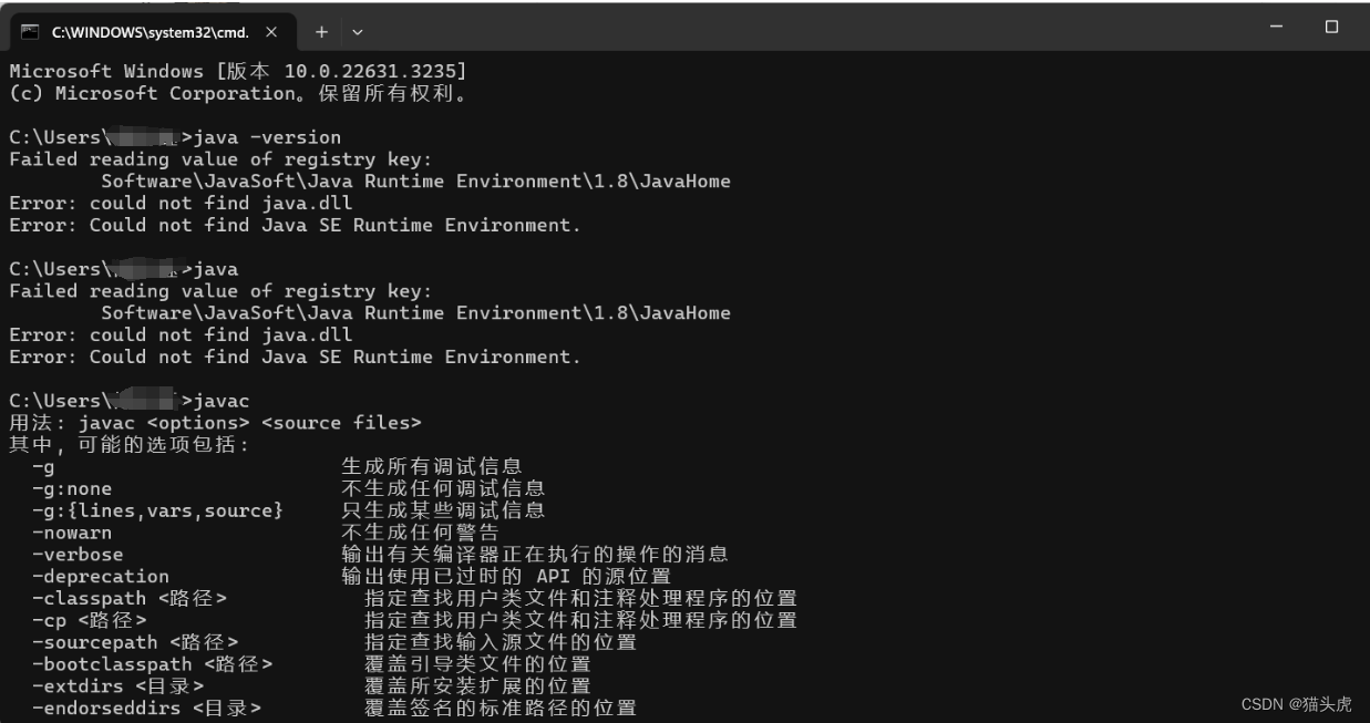 在本篇博客中,我们将深入探讨Java环境配置中的常见启动问题,特别是当javac命令工作正常,而其他Java命令(如java -version)报错时的情形。