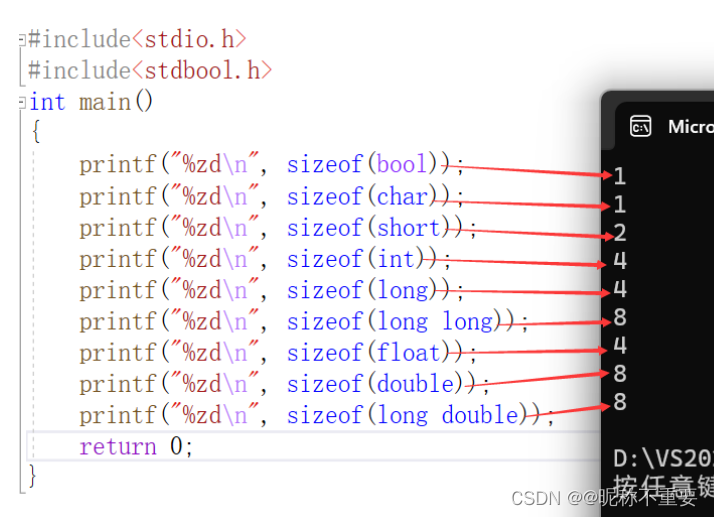 我们了解了基本数据类型和 sizeof 的用处,接下来就是利用sizeof 来看看基本数据类型的长度