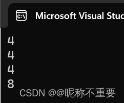 int main() { int a = 5; printf("%zd\n", sizeof(a)); printf("%zd\n", sizeof a); //a是变量的名字,可以省略sizeof后面的括号 printf("%zd\n", sizeof(int)); printf("%zd\n", sizeof(2 + 1.5)); return 0; }代码结果如下