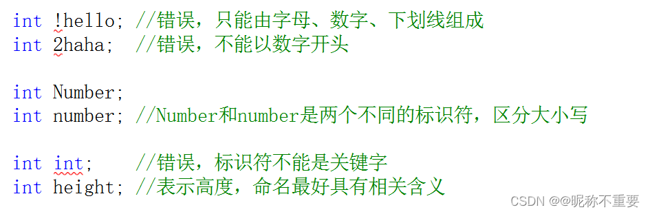 简单来说,标识符就是名字,主要用于给变量、常量、函数、数组等命名,就像每个人都有一个名字,如张三、李四等。