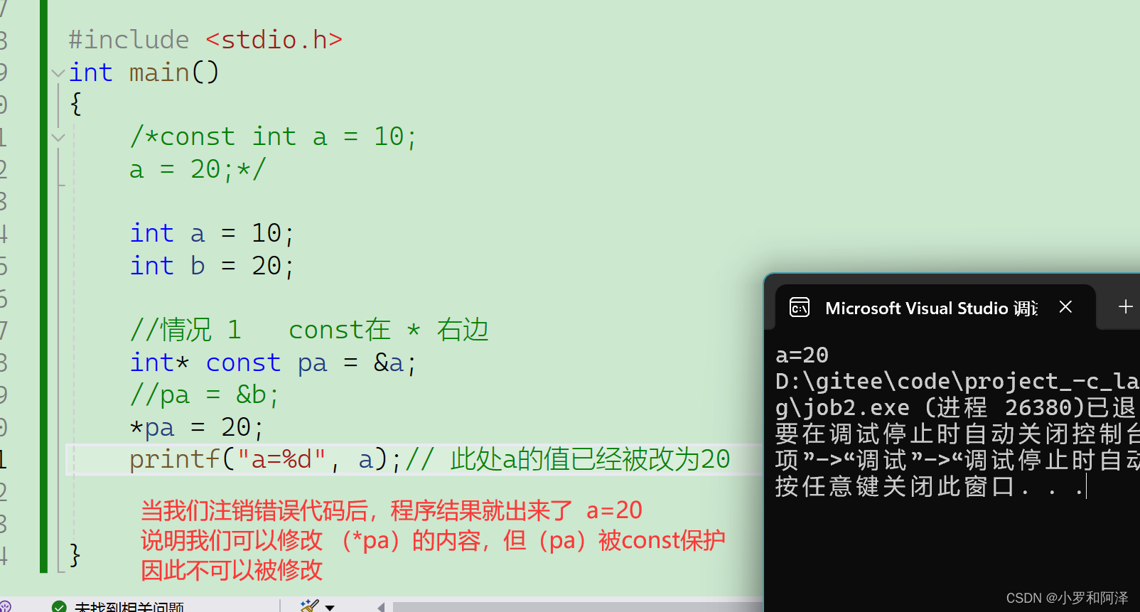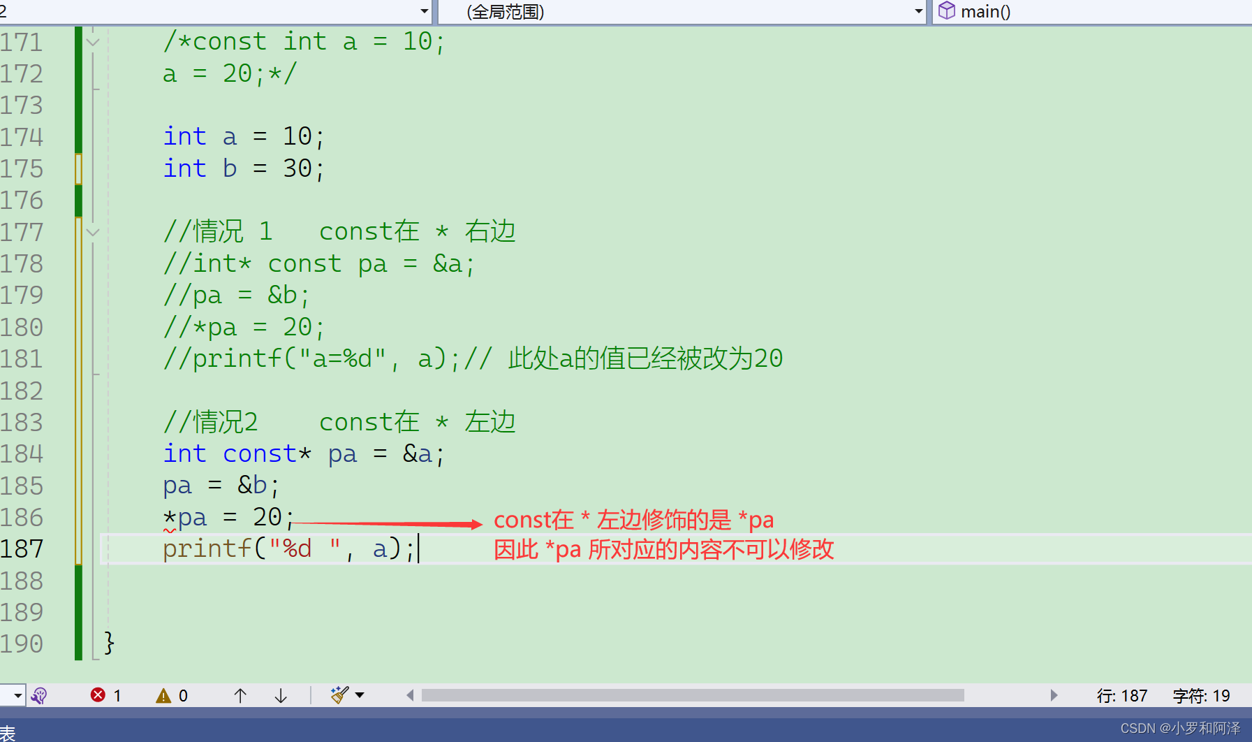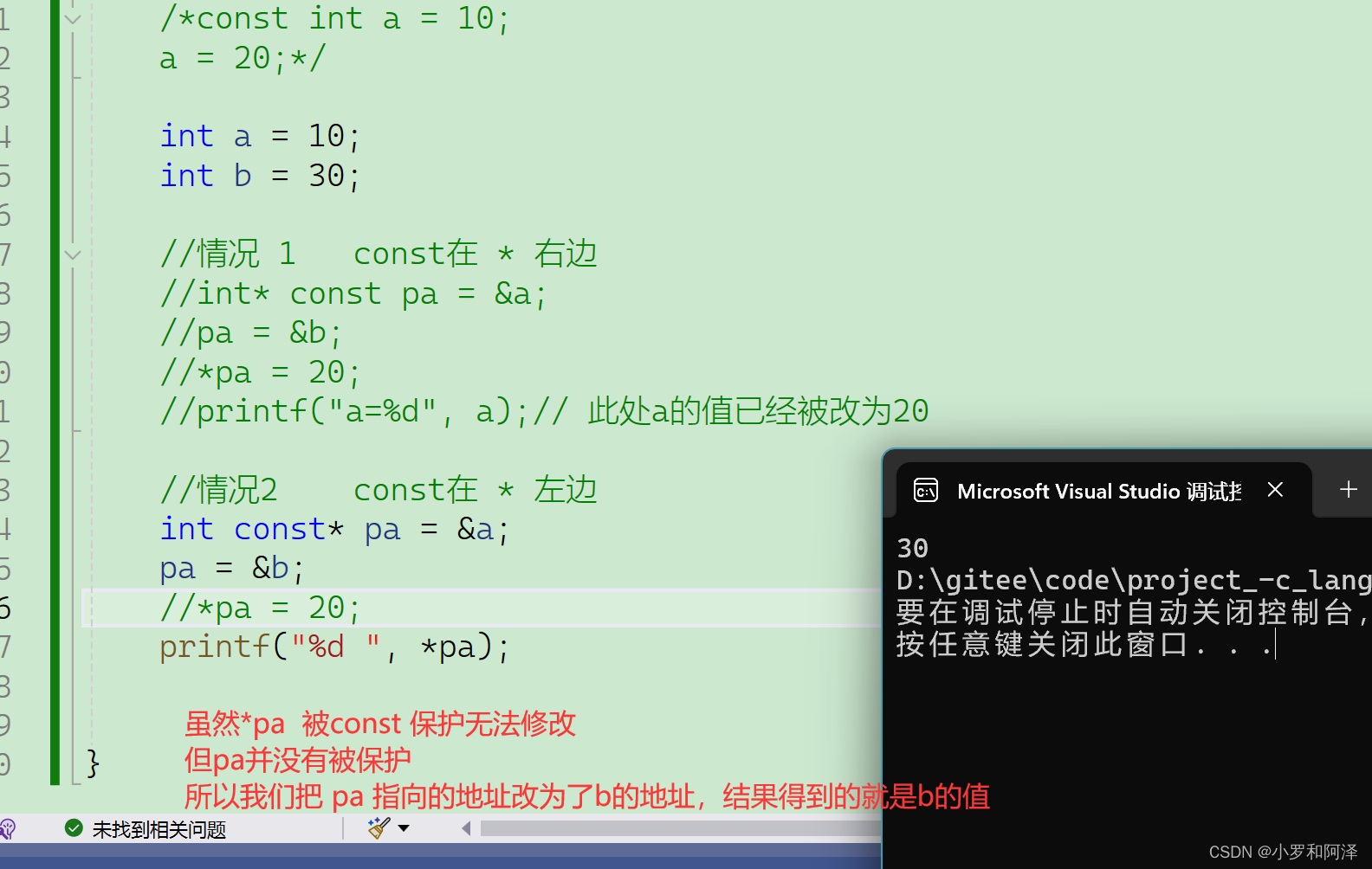 情况1 const 在 * 右边