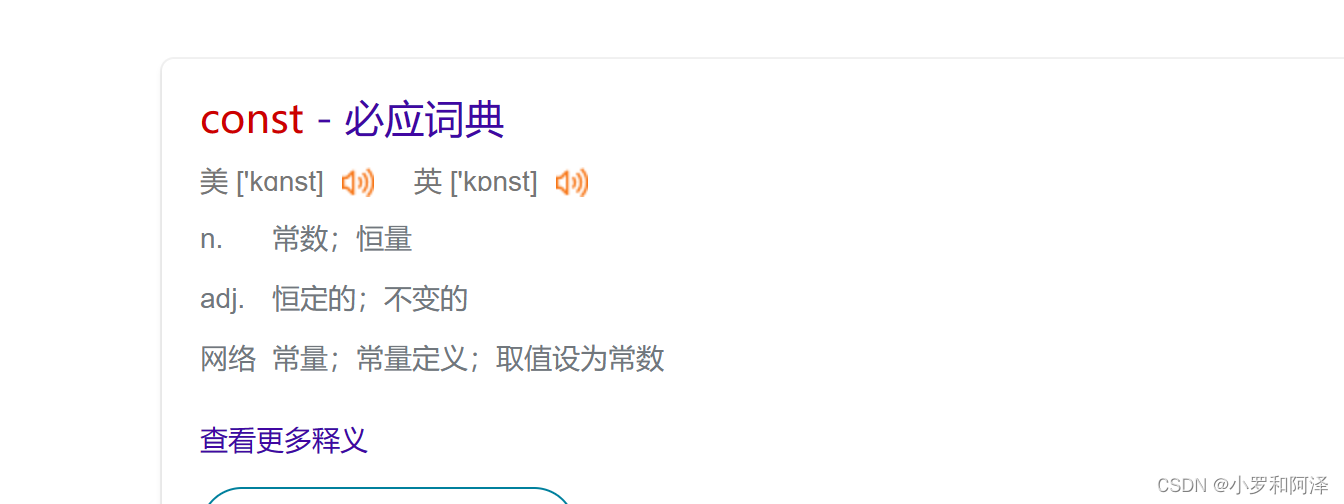 学习之前我们先简单来看一下const的意思,这样能更好的帮助我们去理解const在c语言中的作用