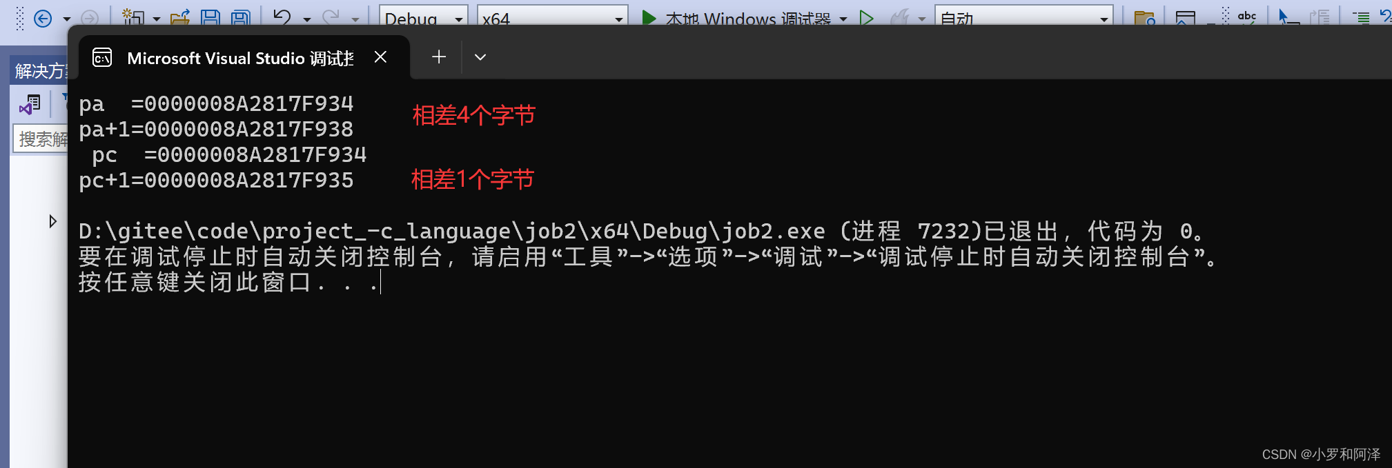 义,每⼀种含义都代表⼀个地址。那么32位地址线 就对应32个bit位 , 32bit = 4Byte。这就是为什么在32位环境下,指针变量类型的大小都是4个字节。