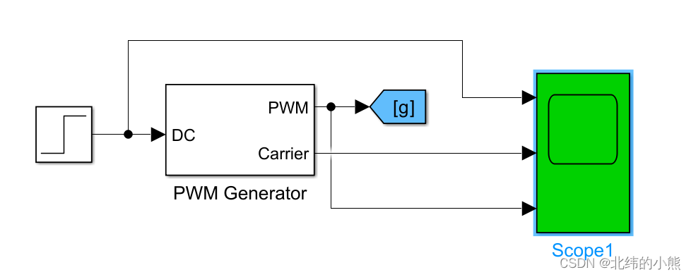 如下图所示,占空比给定0.2,通过与载波比较得到输出驱动PWM波形。