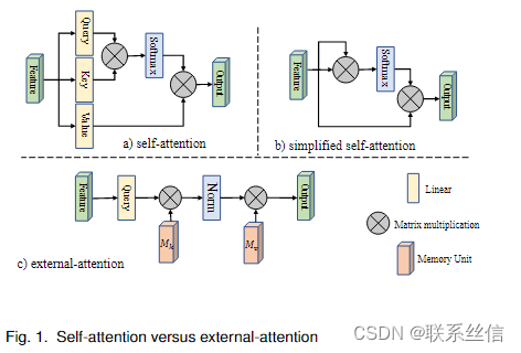 本文介绍了外部注意力,这是一种新颖但有效的注意力机制,可用于各种视觉任务。外部注意力中采用的两个外部存储器单元可以被视为整个数据集的字典,并且能够在降低计算成本的同时学习更多具有代表性的输入特征。我们希望外部注意力将激发实际应用和研究其在 NLP 等其他领域的使用。