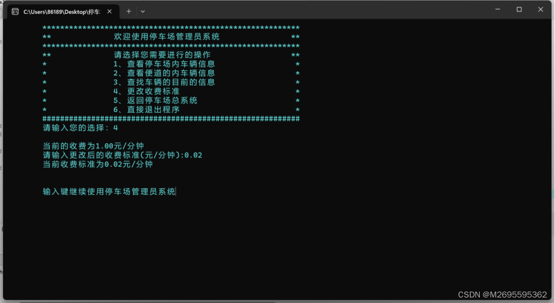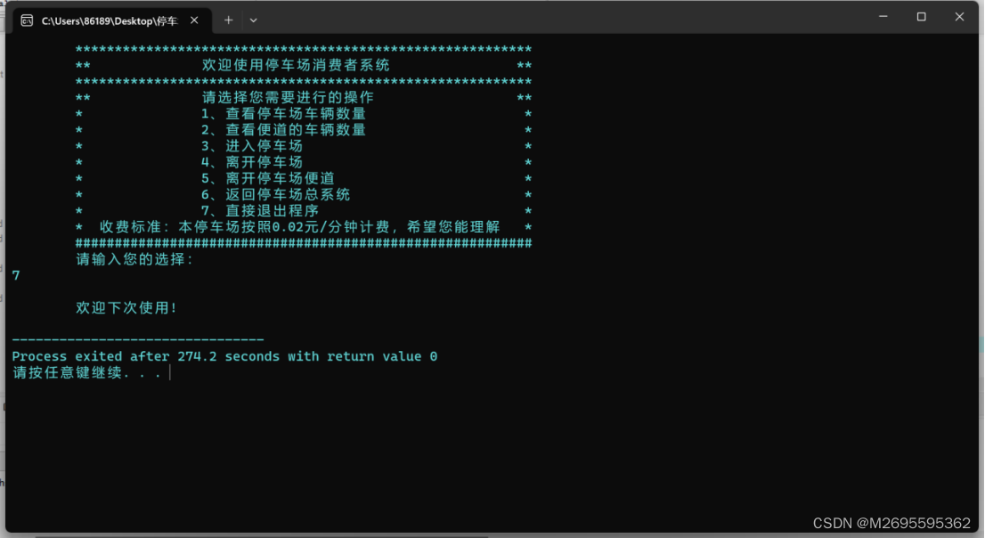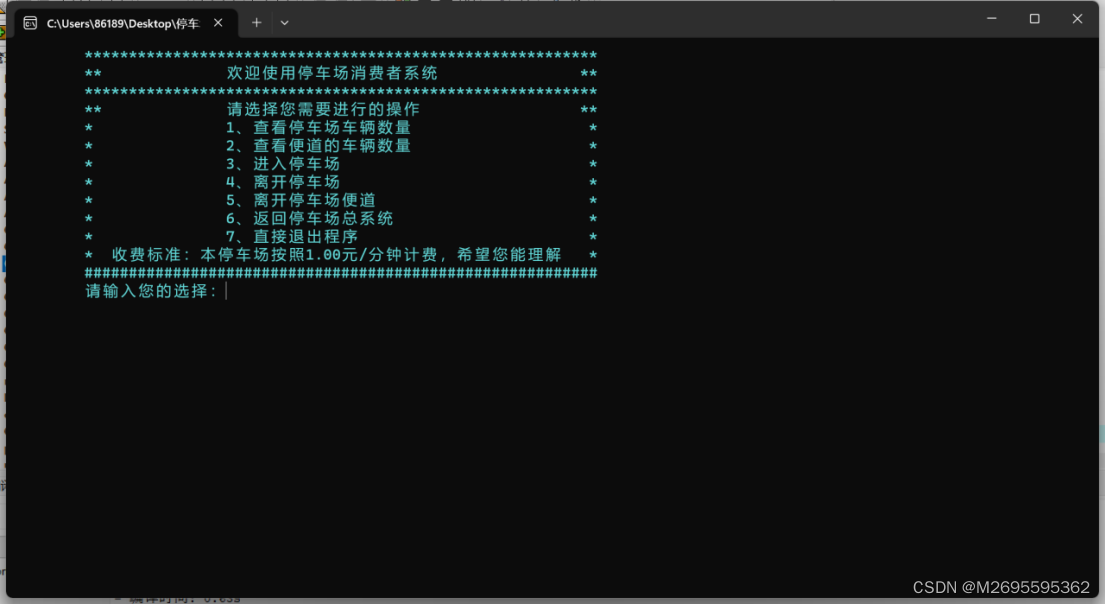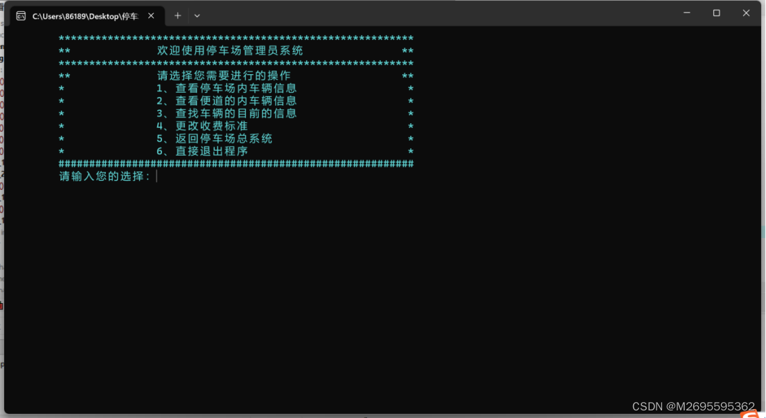 printf("\t车牌号 位置 停放时间 目前要支付的停车费用");
