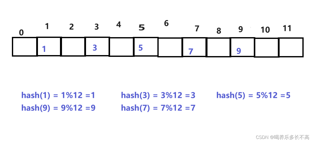如果用这种方法我们要查找7只需要通过哈希函数就可以直接得到7所在位置,不需要进行多次比较。不过你可能会有疑问,按照上述哈希方式,向集合中插入元素13,会出现什么问题🤔?13%12 =1;可是1位置已经有元素了🧐。