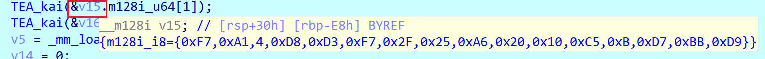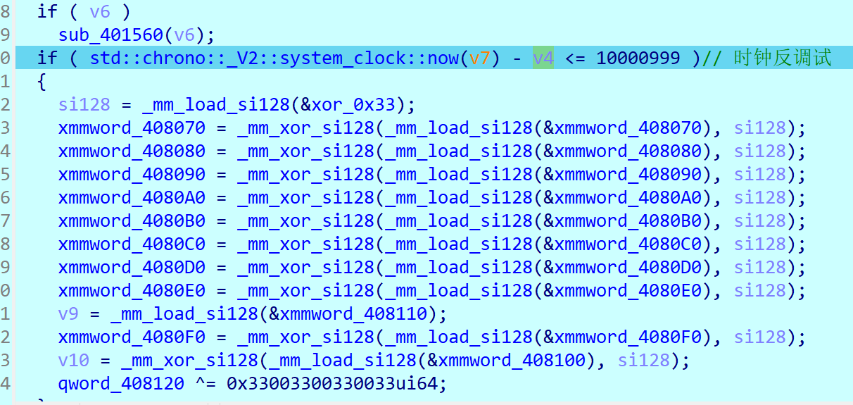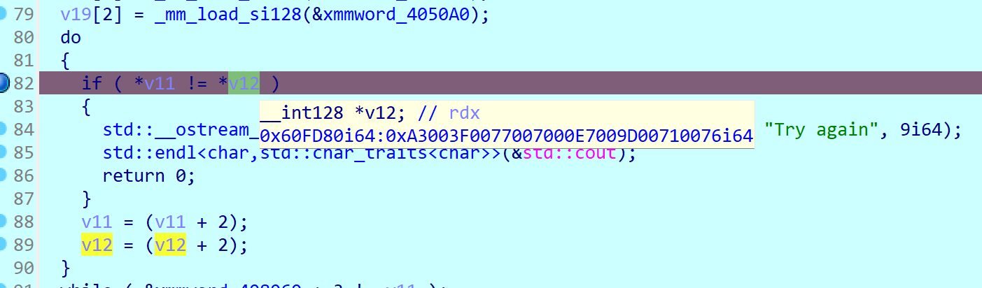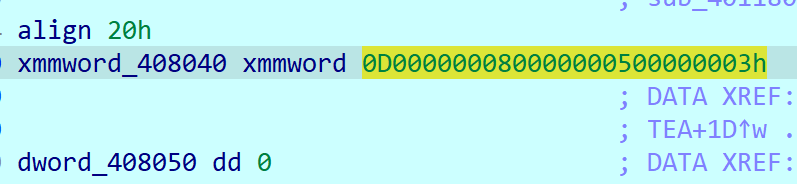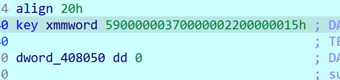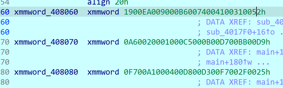 数据都存到xmmword里面去了,可以查看一下xmmword_408060,发现里面的数据是动调出来密文的倒序