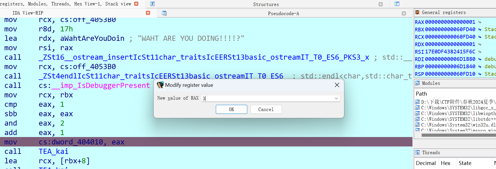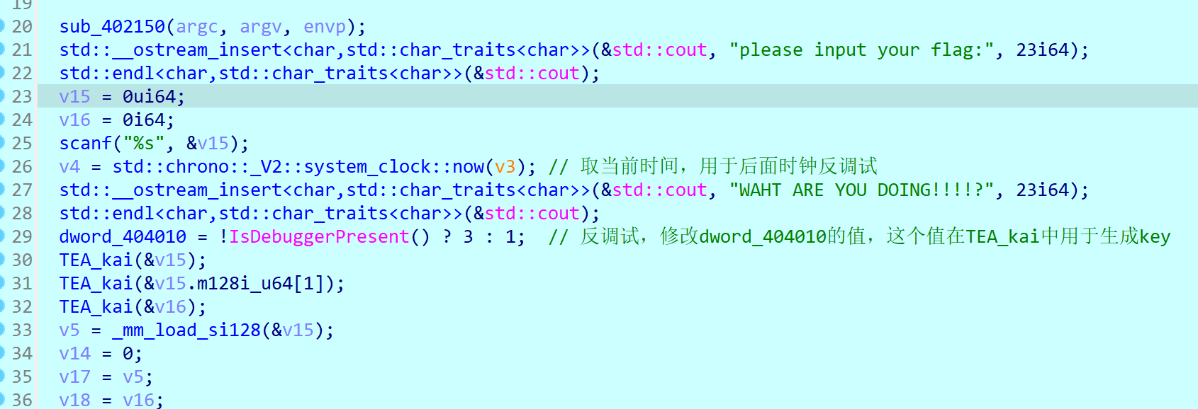 29行的反调试动调的时候改一下rax寄存器的值就行