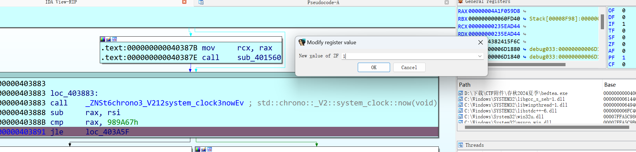 40行的反调试改一下ZF值为1即可,本来是往左边跳转(检测到调试),修改后往右边,异或0x33