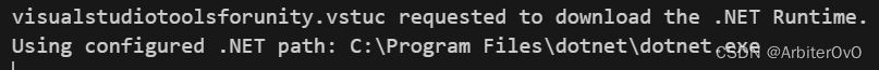 [Unity]visualstudiotoolsforunity.vstuc requested to download the .NET Runtime.
