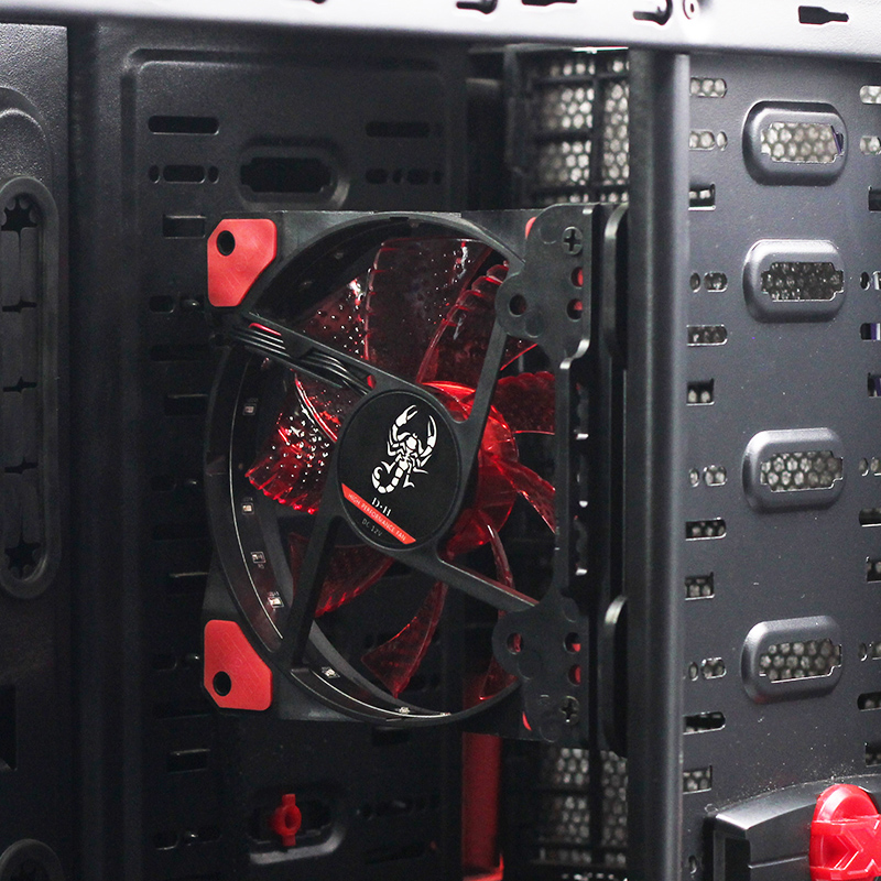 机箱额外搭配同款填满,风扇具体的规格参数,最高转速 2000RPM 左右、最高风量 91.3CFM 左右、风压 4.28mmH20、噪音值 ≤35.06dB(A) 等,另风扇出厂均做了动平衡调校处理,利于提升稳定性及使用寿命。