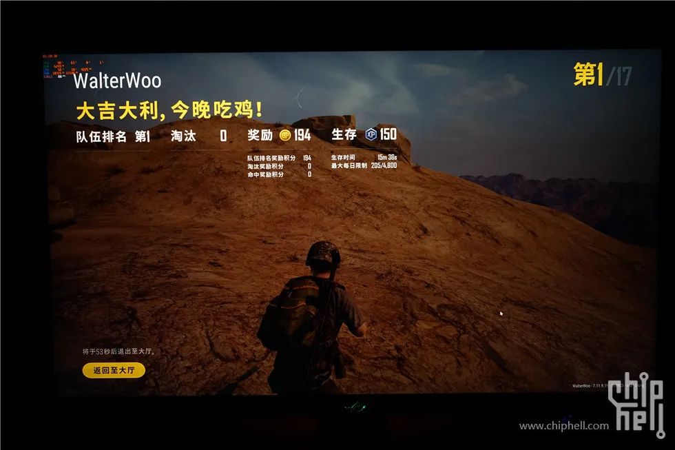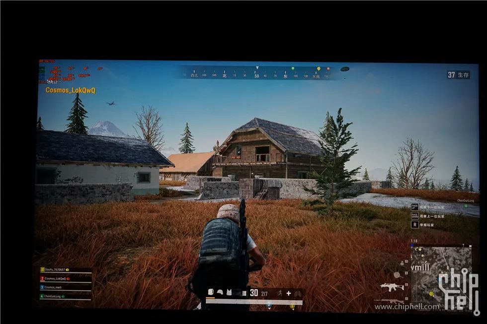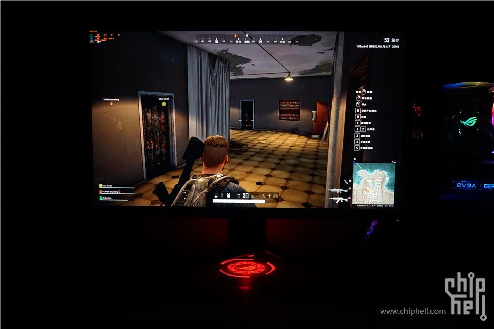 所谓新机新气象,4K分辨率下游戏图像细腻,虽然帧率下降到70-80帧,但朋友已经完成了杀鸡吃鸡的成就。 注意记得开启XG27UQ自带的ELMB Sync(华硕的动态图像清晰度)、Shadow Boost(阴影增强),特别是ELMB,华硕动态图像清晰度研发的目的就是让游戏画面更流畅,减少撕裂现象、 口吃和拖尾。