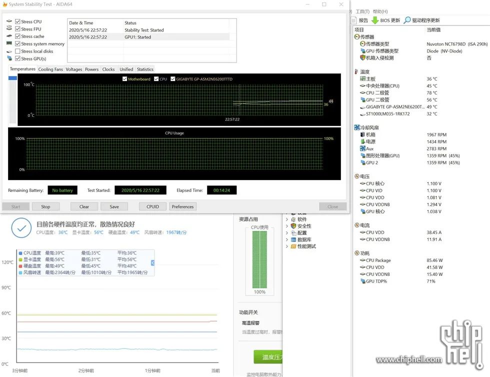 室温20℃,整机静音,AIDA64压力测试,CPU最高78℃,显卡56℃。