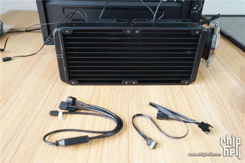 风扇电源转接线和风扇灯效连接线,因为使用GT301机箱,所以不需要风扇灯效连接线,所以接线更方便,理线也更方便。