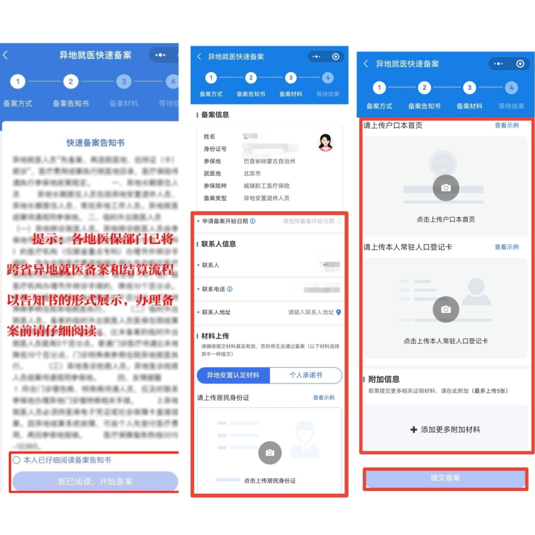 您可以下载全国医保服务平台、国务院客户端APP或微信小程序搜索“全国异地医疗登记备案”、“国务院客户端”、“新疆医保服务平台”等方式。